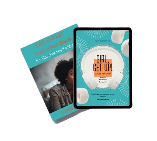 The Girl, Get Up! You’re Not Stuck Audio + Workbook Companion is a mix of honest voice notes, heart-to-heart steps, and gentle workbook pages that give you space to reflect and stay encouraged. Each audio session feels like a quiet conversation with someone who understands, while the companion pages help you hold onto what spoke to your heart. This is the mirror. This is the movement. This is the work.